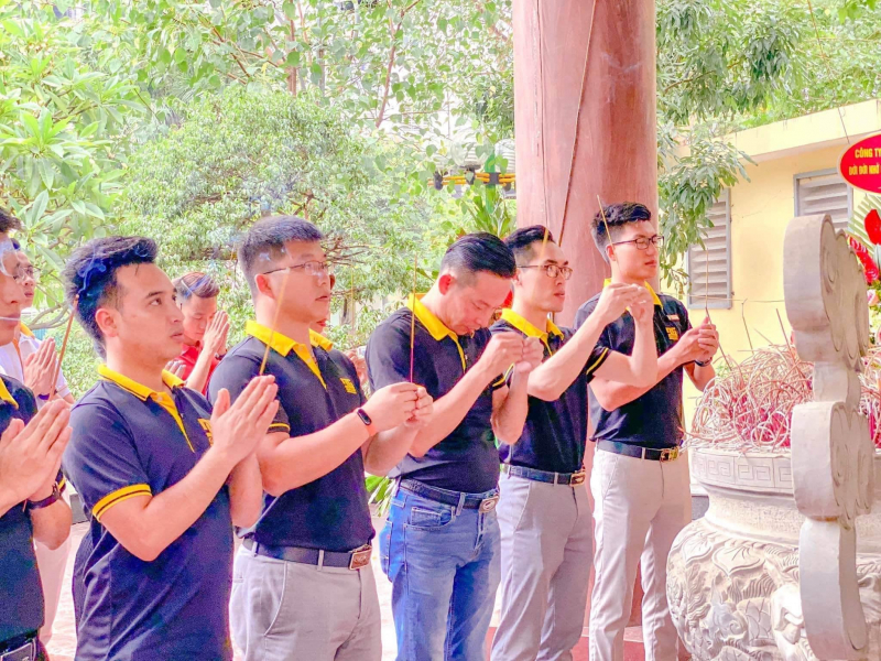 Cán bộ công nhân viên Hệ sinh thái DGroup Holdings dâng hương tại Đài tưởng niệm Dịch Vọng Hầu.