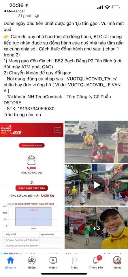Trong chiến dịch Tổng Công Ty Dgroup Holdings cùng các công ty con dưới sự bảo hộ của Tạp chí Sở hữu trí tuệ và Sáng tạo tổ chức quyên góp từ những nhà hảo tâm và doanh nghiệp được hàng chục tấn gạo cho ATM GẠO thông minh dành cho cộng đồng, chương trình đang thu hút được nhiều lượt quan tâm và san sẻ giúp đỡ hàng ngàn người dân cần hỗ trợ đến nhận trong nhiều ngày qua.